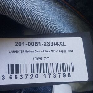 New 100% cotton baggy carpenter jeans Waist 15.5" flat lay Inseam 30" Front Rise 11.5