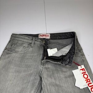 Brand new with tags! These Fiorucci skinny jeans are a stylish and versatile addition to your wardrobe. Featuring a sleek gray wash with subtle fading, classic 5-pocket styling, and zippered ankle hems for an edgy touch. High-quality denim made under Ittierre S.p.A. in Tunisia with Italian design influence.