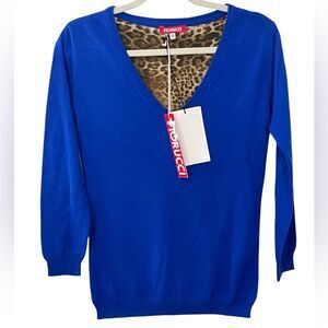 NWT Fiorucci Vintage V-neck Sweater Sz XS Royal Cobalt Blue Wool Blend ITTIERRE