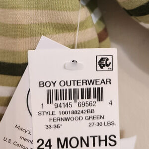 Keep your little one cozy and stylish with this adorable reversible jacket from First Impressions! This jacket is brand new with tags and ready for a new home. One side features a fun striped pattern, while the other side is made of super soft faux-sherpa material, perfect for snuggling.