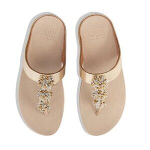 NWT FitFlop Comfort Galaxy Toe Wedge Beaded Flip Flop Gold Metallic