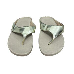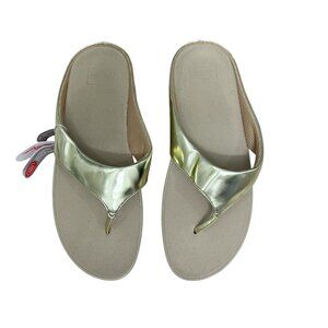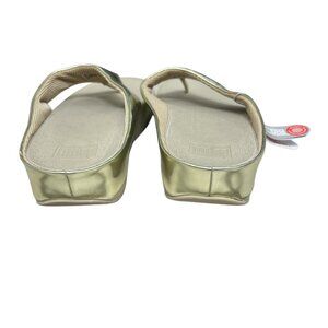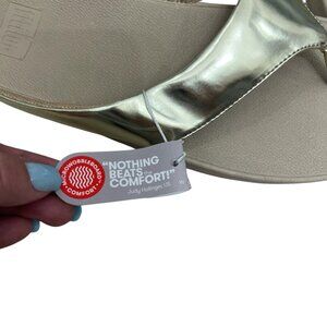 NWT Fitflop Ringer Leather Gold Metallic thong women's wedge sandals size 10