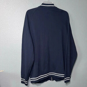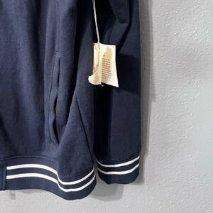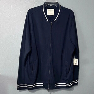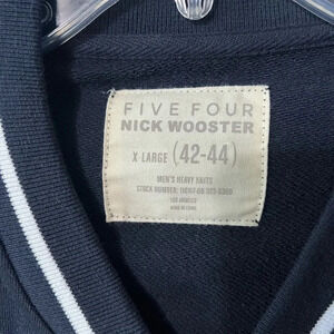 FREE SHIP! NWT Five Four Nick Wooster Shirt Mens Sz XLG (42-44) Navy Blue Cardigan Travel. NEW!! Unzips from bottom of zipper as well as top. Shoulder to hem 31. Wrist to shoulder seam 28.