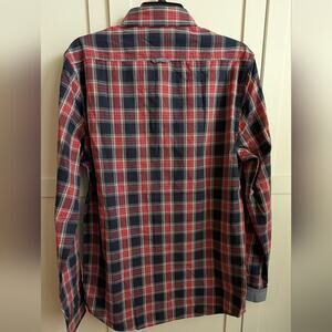 NWT Flag & Anthem Long sleeve Red And Navy Plaid Button Down Shirt Size M Tall