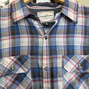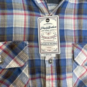 NWT Flag and Anthem Blue Red Plaid Button Down Medium
