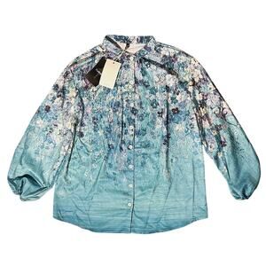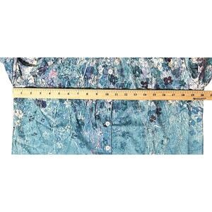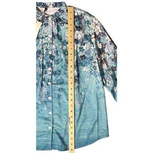 NWT Flamingo Blue Floral Print Stretch Button Up Shirt Women's Medium