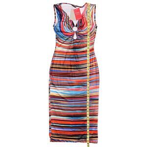 NWT Flamingo Striped Ring Linked Hollow Out Stretch Midi Dress Women's Small