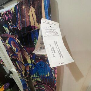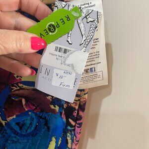 These are floor length flared very colorful yoga pants size large. Brand is Inspire Active Wear by Barbara Northrup. Never worn, new with tags. Machine wash in cold water on gentle cycle. 86% recycled polyester, 14% spandex.