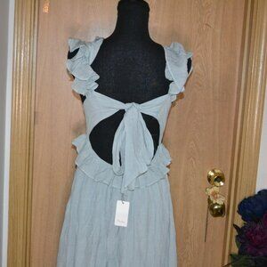 NWT Flawless Ruffle Tie Back Boho Beachy Wedding Guess Maxi Dress