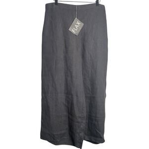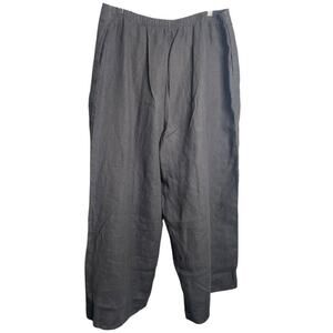 NWT Flax Women’s Flat Front Wide Leg Charcoal Gray Linen Pants Large Lagenlook