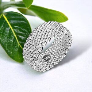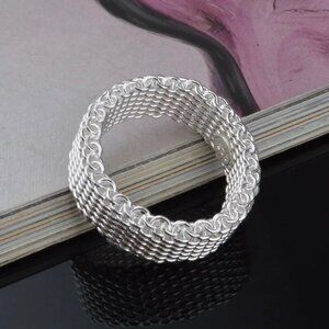 NWT Flexible Mesh Wide Band Ring Sz. 7 S925 Sterling Silver Stamped