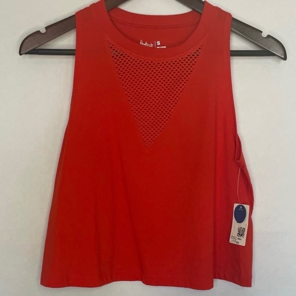 NWT Flirtitude Active Red/Orange Sleeveless Mesh V Workout Crop Tank Top; Size XXL. In new with tags condition. Body is 60% Cotton and 40% polyester and mesh is 87% polyester and 13% spandex. Machine wash cold and tumble dry low. When lying flat, measures 21.5” pit to pit and 19.5” in length from top of back collar to bottom hem