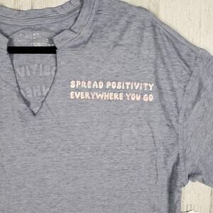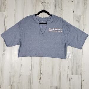 NWT Flirtitude Active Perfect Dusty Blue Positivity Graphic Crop Tee Women's Size XS