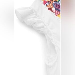 NWT Floerns Ruffle Striped Mexican Embroidered Babydoll Blouse Size medium 5370