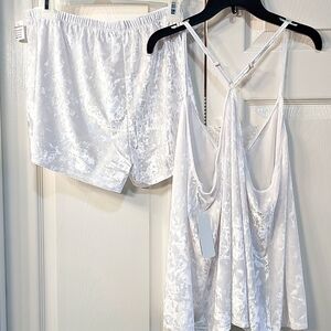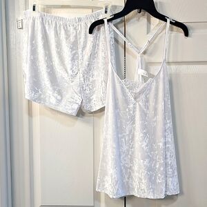 NWT Flora Nikrooz Rebecca Crushed Velvet Cami & Shorts Pajama Set Ivory XL