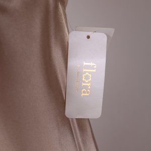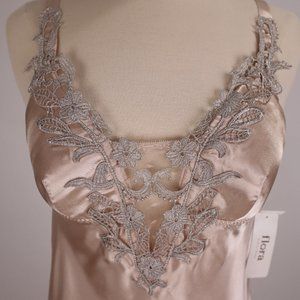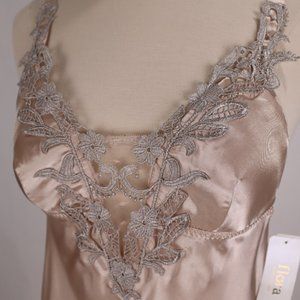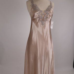 ❄ NWT Flora Nikrooz Taupe Silver Satin Lace Bridal Nightgown Lingerie Negligee S