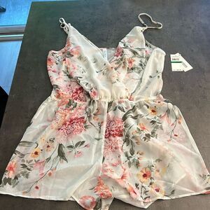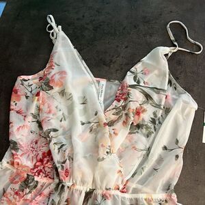 Crafted in feather light and floral print chiffon and finished with an elegant surplice neckline, this Flora Nikrooz romper is a sophisticated sleepwear pick.