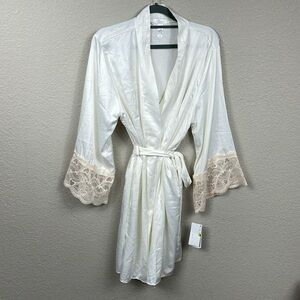 NWT Flora by Flora Nikrooz Kit Heart Lace Matte Charmeuse Wrap Robe L XL FLAW