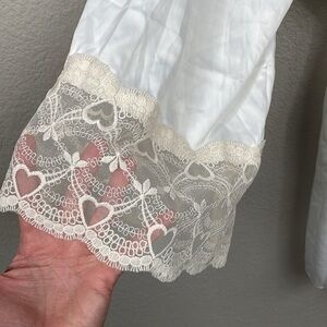 Sleeve Length: Heart-lace-trim three-quarter-length sleeves