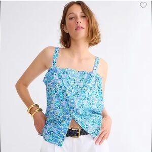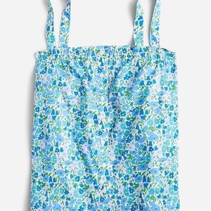 New This stylish tank top by J. Crew features a smocked design with a tie front, offering a chic and comfortable fit. The vibrant blue and green floral pattern adds a fresh touch, perfect for warm weather. Enjoy the lightweight feel and relaxed fit of this must-have camisole.