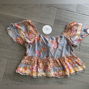 NWT Floral Boho Crop Top and Distressed Denim Shorts