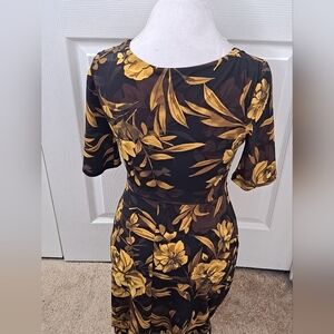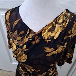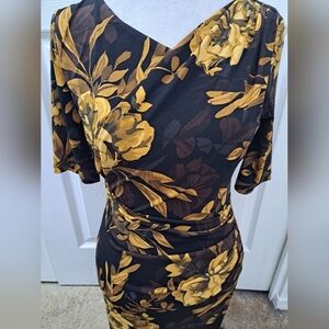 NWT Floral Faux Wrap Black & Gold Dress Size 4