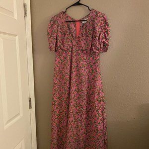 New With Tags Floral Flutter Sleeve Dress in Carnation from Piper and Scoot. Sized at a large but the bust is a bit more tight and may fit like a medium.