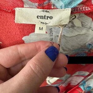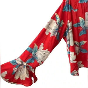 NWT Floral Kimono Tie Top Red Medium Bell Sleeve