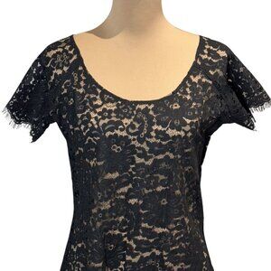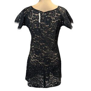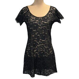 NWT Floral Lace Mini Dress Sz.L Black Sheer Goth Festival Y2K Beach Cover-Up