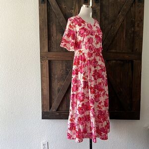 NWT Floral Midi Summer Tiered Dress with Ruffle Sleeves and Pockets