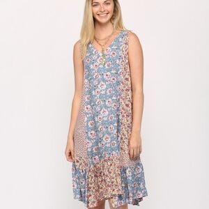 NWT! Floral Mixed Print Asymmetrical Sleeveless Dress With Neck Tie Boho Gypsy