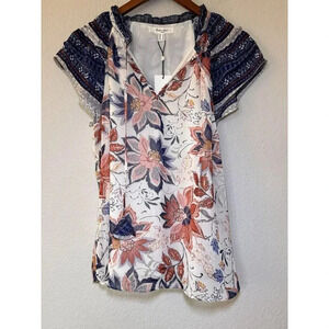 NWT Floral Print Blouse with Navy Accents