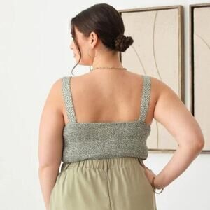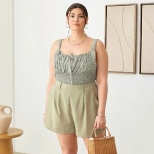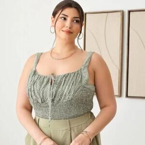 NWT Floral Print Tie Detail Ruched Stretch Smocked Sleeveless Top in Sage Green
