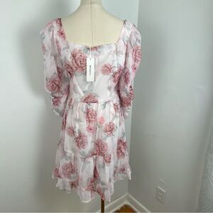NWT Floral Sweetheart Babydoll Mini Dress Size M Feminine Romantic Lace Ruffled