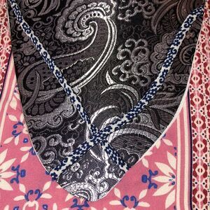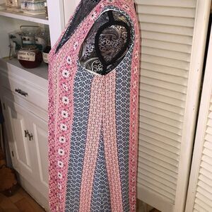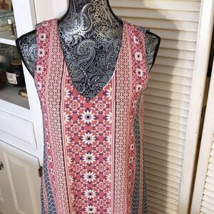 NWT Floral Bandana Print Cross V Neck Shift Dress. Pink and Blue. Small.