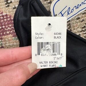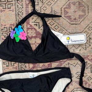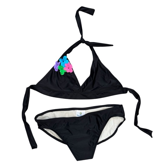 NWT Florence Eiseman Black Swim Suit Bikini Girl’s Bathing Embellished Flower