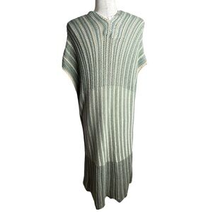 Elevate your beach look with this stunning Floris Made in Italy Crochet Olive Gold Sheer Cover Up Dress in Size S/M. The dress features a beautiful striped pattern, V-neckline, and dolman sleeves. The gold lurex accents add a touch of glamour to the dress, making it perfect for a casual day out or a resort evening. The dress is made of a cotton blend material and is perfect for the summer and spring seasons. It is easy to wear and care for, as it is a pullover dress with no collar and is hand wash only. This A-line sheath dress is perfect for any bohemian or Italian themed occasion. Add this dress to your wardrobe and make a statement wherever you go.