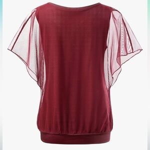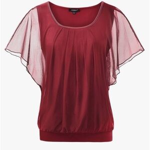 NWT Flouncing Flared Short Sleeve Tunics Mesh Blouse Tops red Large
