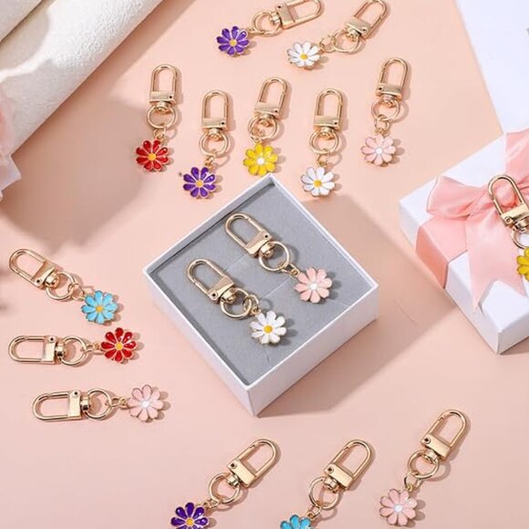 These daisy keychains are made of zinc alloy, durable and elegant in design. The keychain design of daisy and cherry blossom patterns is classic and ideal for floral keychains loved by women
