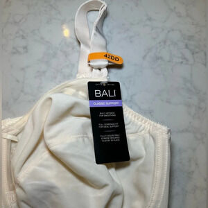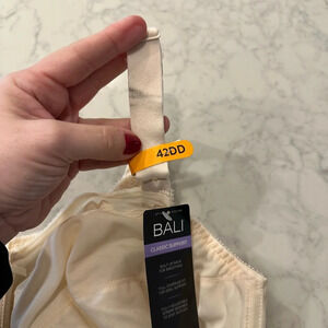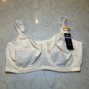 One of our bestselling bras, the Flower Bali® underwire bra offers outstanding support with amazing comfort. The full-frame construction provides support in any size, with seamed full-coverage cups and underwires for comfortable lift and shaping. Comfort-U® stay-in-place straps offer even more support and conveniently adjust in front. You'll love the sheer trim at the neck with pretty floral embroidery and a dainty satin bow. Even better, this full-frame underwire bra is available in an exceptional size range that accommodates even hard-to-fit figures.