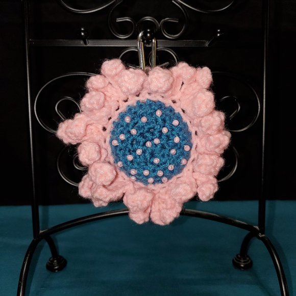 Pink petals and beaded turquoise stuffed center with secure c-clasp. NEW