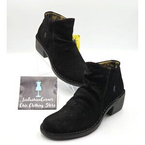 NWT Fly London Women's Black Suede Merk Ankle Bootie Size 8.5 (39) 2821