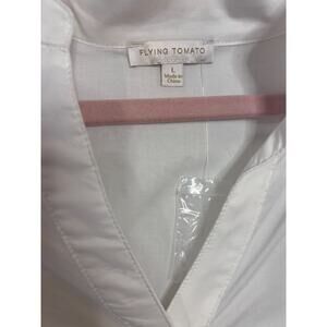 The NWT Flying Tomato Size Large White Top with Blue Ric Rac Trim is a stylish blouse perfect for casual occasions during the summer and spring seasons. Made from polyester material, this top features short sleeves and a regular fit. The white color with blue ric rac trim adds a touch of flair to the design. With the Flying Tomato brand and a size L, this top is a versatile addition to any woman's wardrobe. Made in China, this blouse is a chic and trendy option for everyday wear.