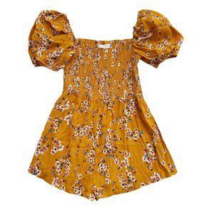 NWT Flynn Skye Justine Mustard Orange Springs Floral Smock Short Sleeve Romper S