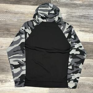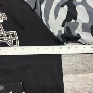 Lightweight, polyester-elastane blend, stretch fabric, camouflage pattern, long sleeve, center team big logo, front graphic print, adjustable drawstring hood, kangaroo pocket, comfort, durable, casual, streetwear, athletic, sporty, football, NFL Team Apparel.
