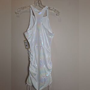 New with tags. Size Medium. Sporty meets trendy. Iridescent White. Pit to pit 17" with stretch. Ruched tied sides