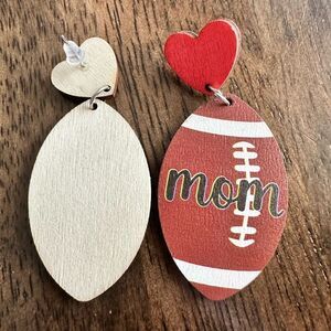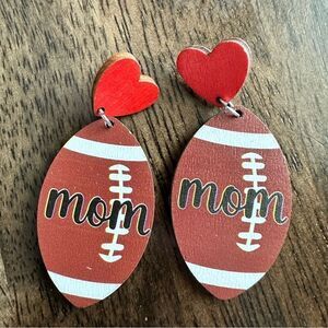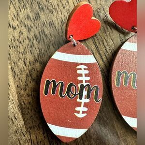 NWT- Football Wooden Earrings Letter Graphic “Mom” Heart Shape Stud w/dangle