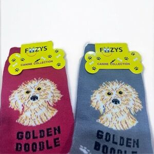 NWT Foozys 2 Pairs Goldendoodle Socks Crew Cut Mid Calf Fun Socks