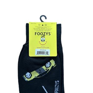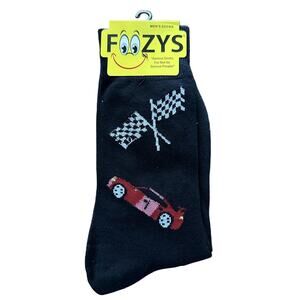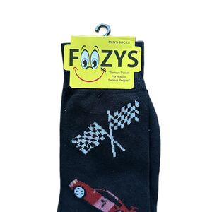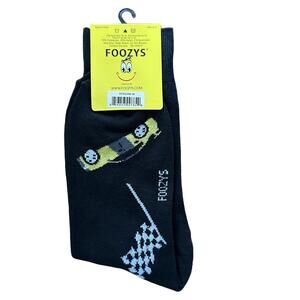 NWT Foozys Black Crew Length Racing Car And Checkered Flag Pattern Socks Size Men's One Size