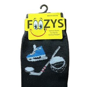 NWT Foozys Hockey Black Crew Length Graphics Novelty Men's Socks One Size
